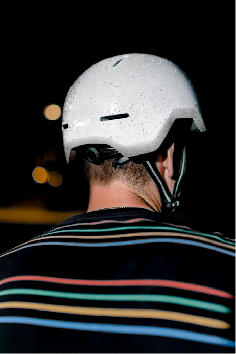 What makes the Swivvle® helmet unique? The Swivvle® helmet has a unique design, created by product designers with comfort, safety, and style in mind, together with engineers who managed to integrate reflective technology into the material of the helmet itself. No coating, no sticker. The reflective technology is built into the entire material of the helmet, 360 degrees. A truly unique design and innovation combined in one helmet that achieves the highest level of safety.